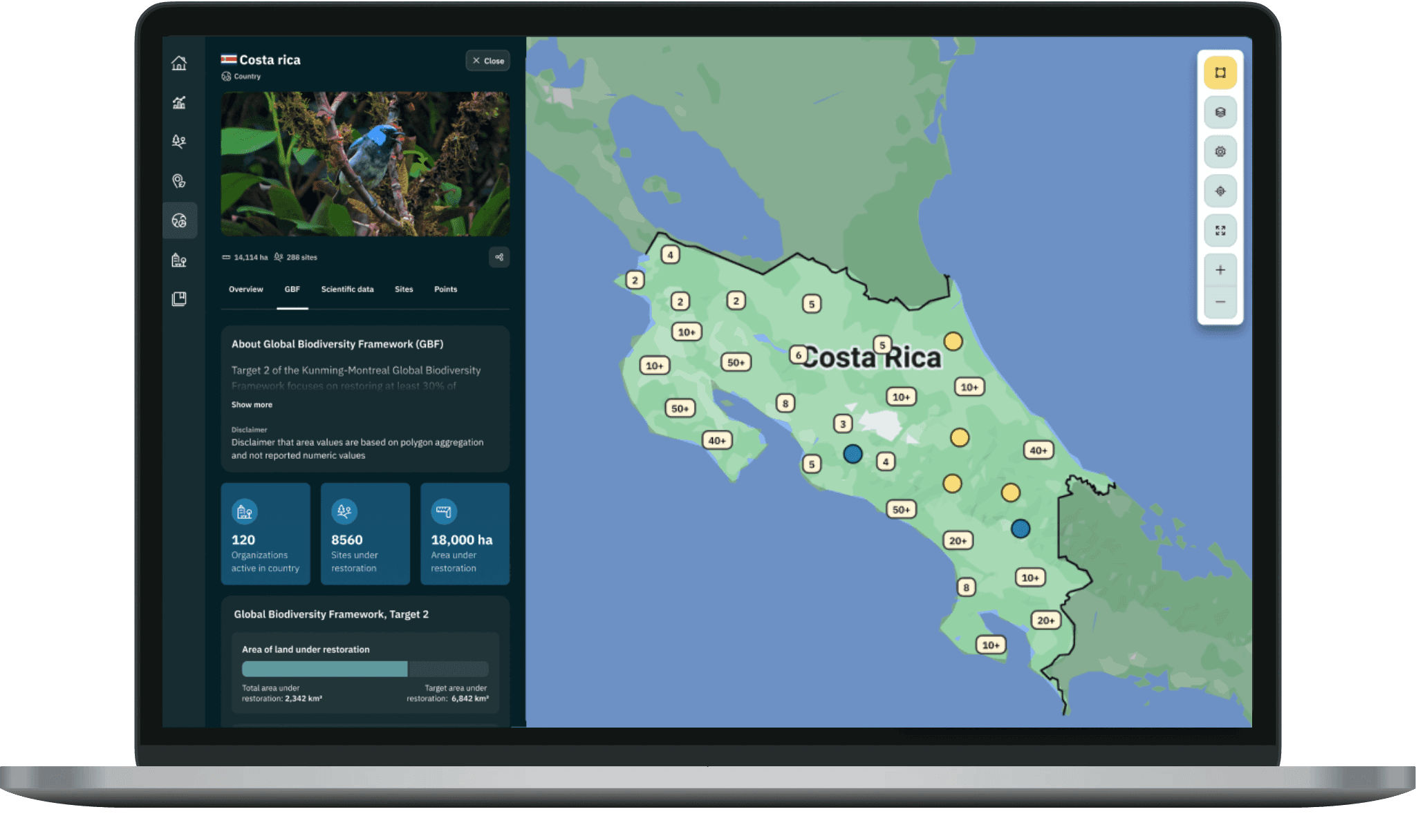 Muestra tu cartera de conservación y restauración con datos creíbles para atraer financiamiento y ampliar tus esfuerzos ambientales nacionales.